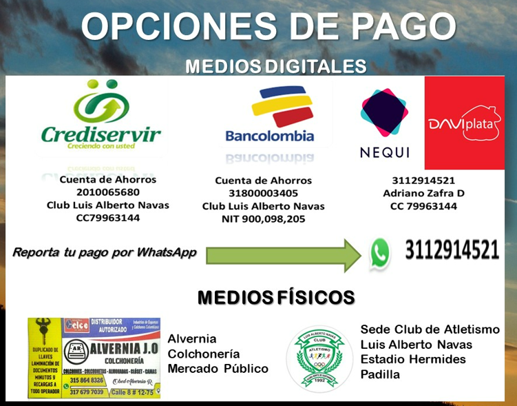 Recreativos: $5.000 ( Se refiere a personas que están comenzando con la práctica del atletismo)