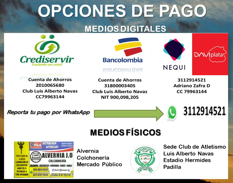 Competitivo: $10.000 Recreativo: $5.000 Menores: $3.000